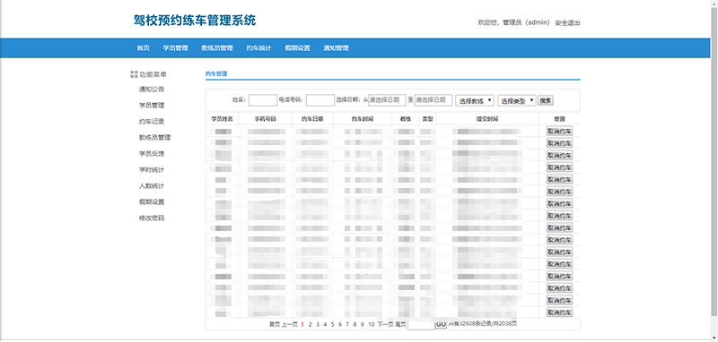 駕校:統計管理學(xué)員信息、學(xué)時(shí),查看學(xué)員反饋,查詢(xún)約車(chē)記錄并取消約車(chē),學(xué)員管理,教練管理,假期設置等功能需求。